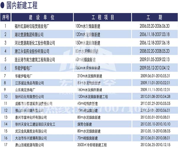 宏順建設(shè)工程有限公司是國家批準(zhǔn)成立的專業(yè)高空作業(yè)企業(yè):承攬過(國內(nèi).國外)煙囪新建、煙囪防腐、磚煙囪新建、煙囪改造、煙囪維修、煙囪脫硫防腐、煙囪拆除加高、煙囪滑膜等高空作業(yè)工程。具有“不搭腳手架 、 不需要停產(chǎn)”施工特點。
